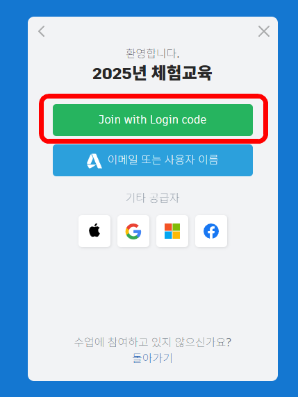 "학생1" 부터 "학생25"까지 교육시간에 부여받은 번호를 입력하면 됩니다.