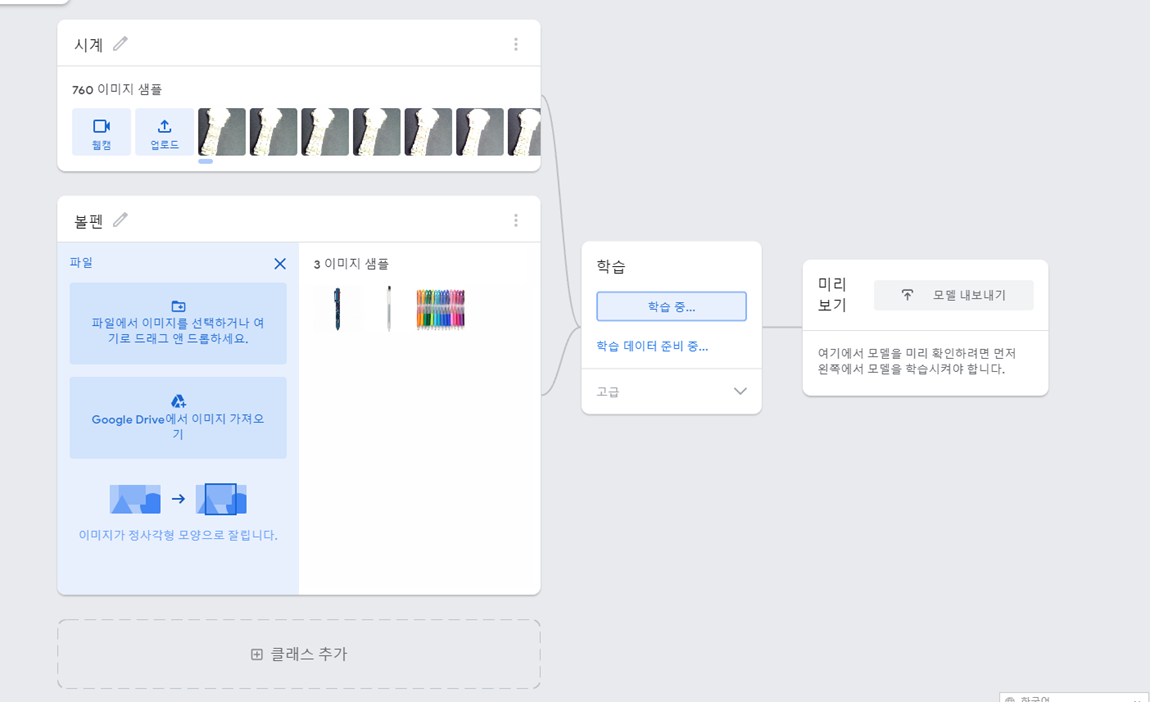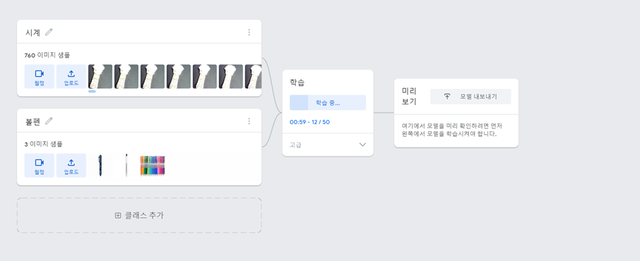 - 이미지, 소리, 또는 포즈 인식용 모델을 직접 브라우저에서 바로 학습시키고 사용 가능