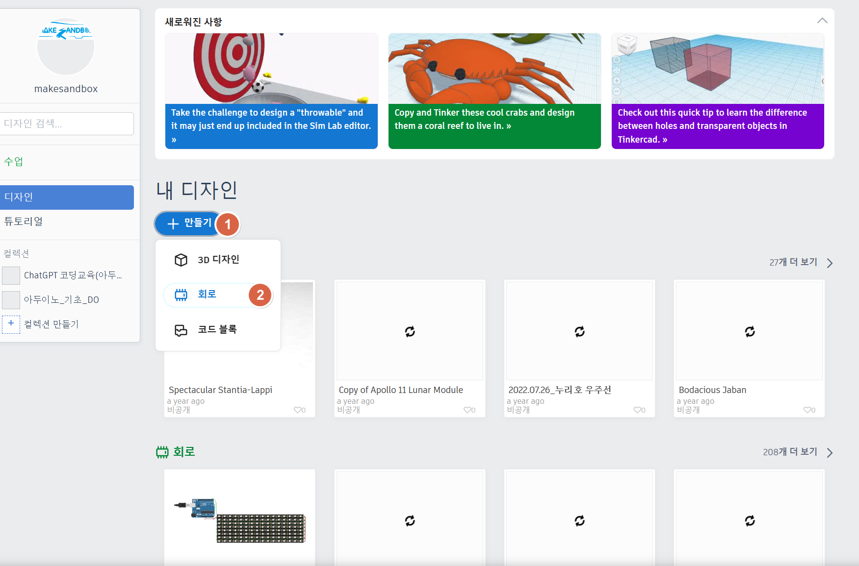 오늘은 팅커캐드(Tinkercad)의 회로 카테고리 관련 기본화면 구성 및 사용방법에 대한 내용을 소개하고자 합니다.