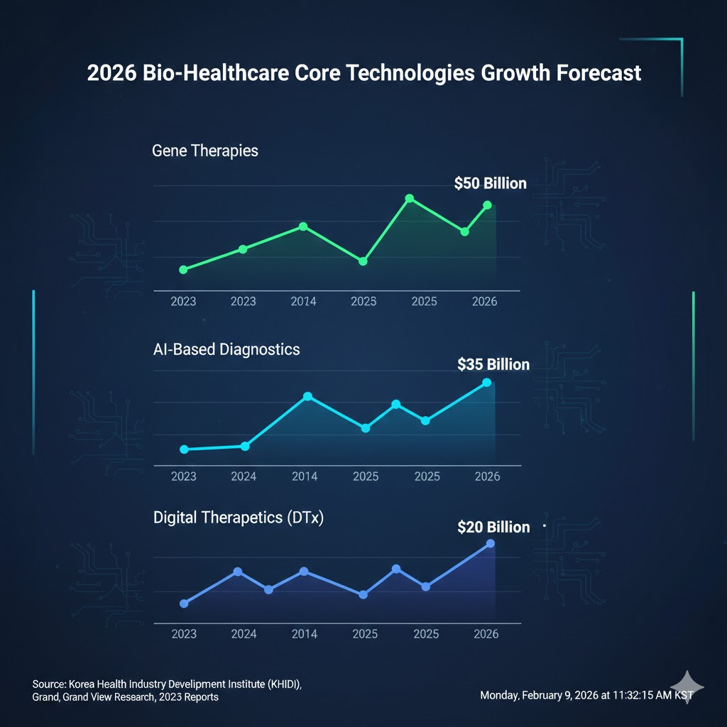 2026년, 바이오 헬스케어 시장에서 주목해야 할 핵심 기술 및 분야는 다음과 같습니다: