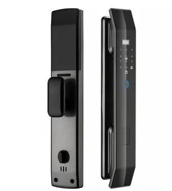 이 이미지는 현대적인 디자인의 디지털 도어록을 보여주고 있는데, 이러한 제품이 항상 안전하다는 보장은 없으니 주의가 필요해요.